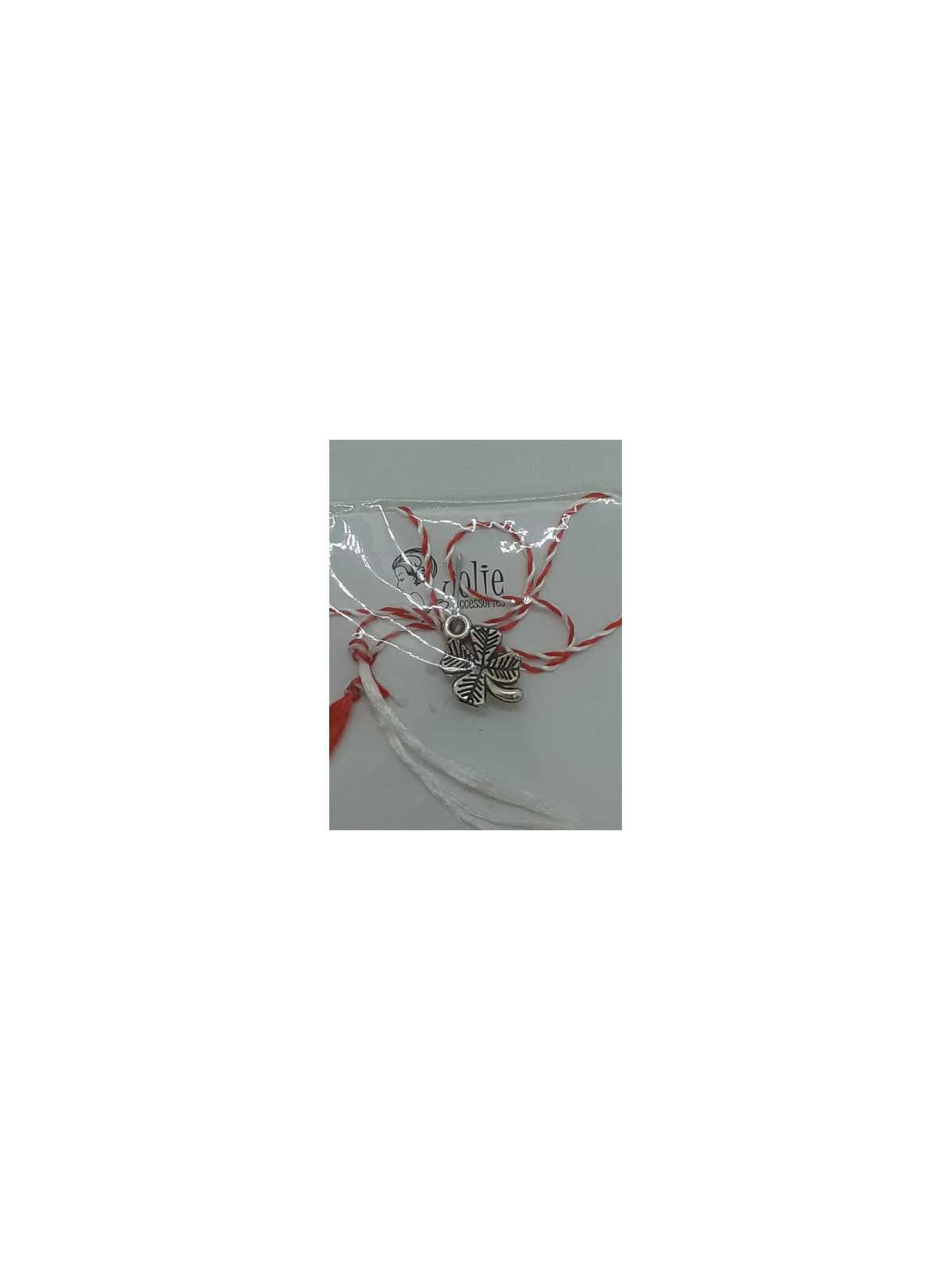 Martisorul din metal culoare argintiu.