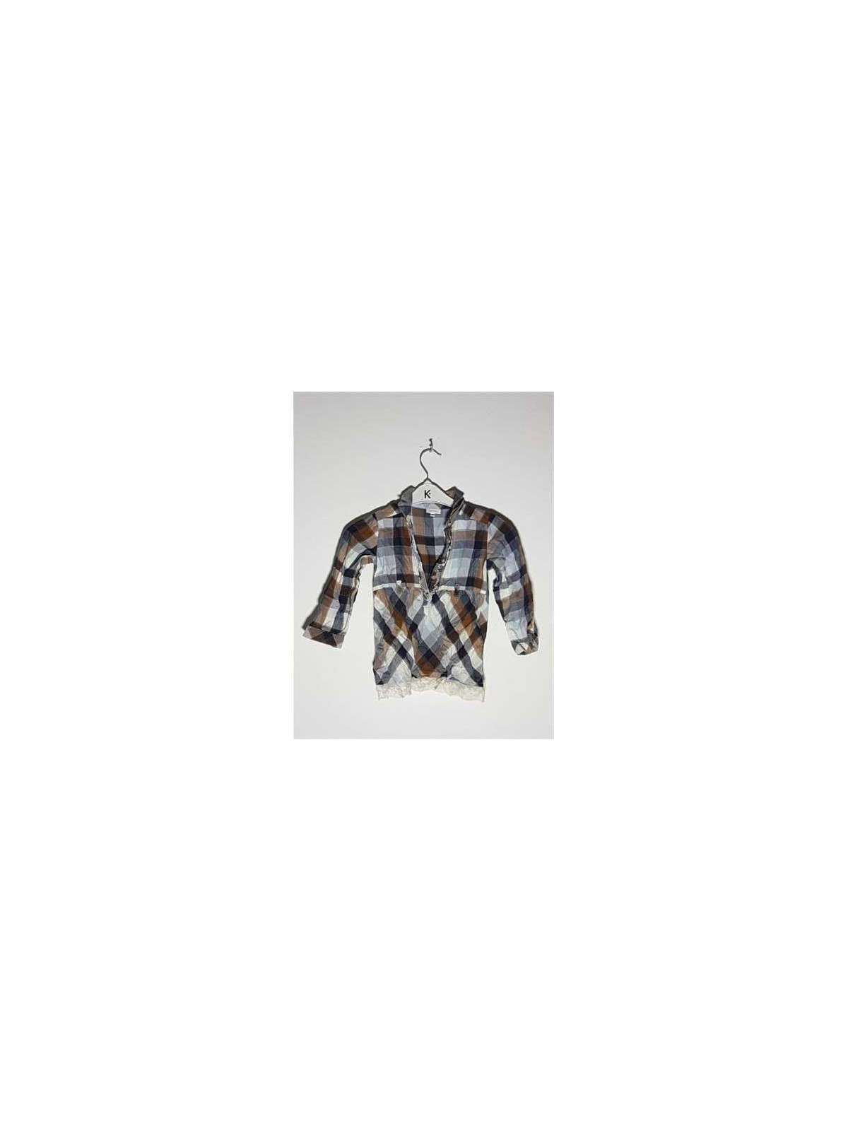 Model in carouri si se incheie cu nasturi la gat, accesorizata cu danteluta jos.