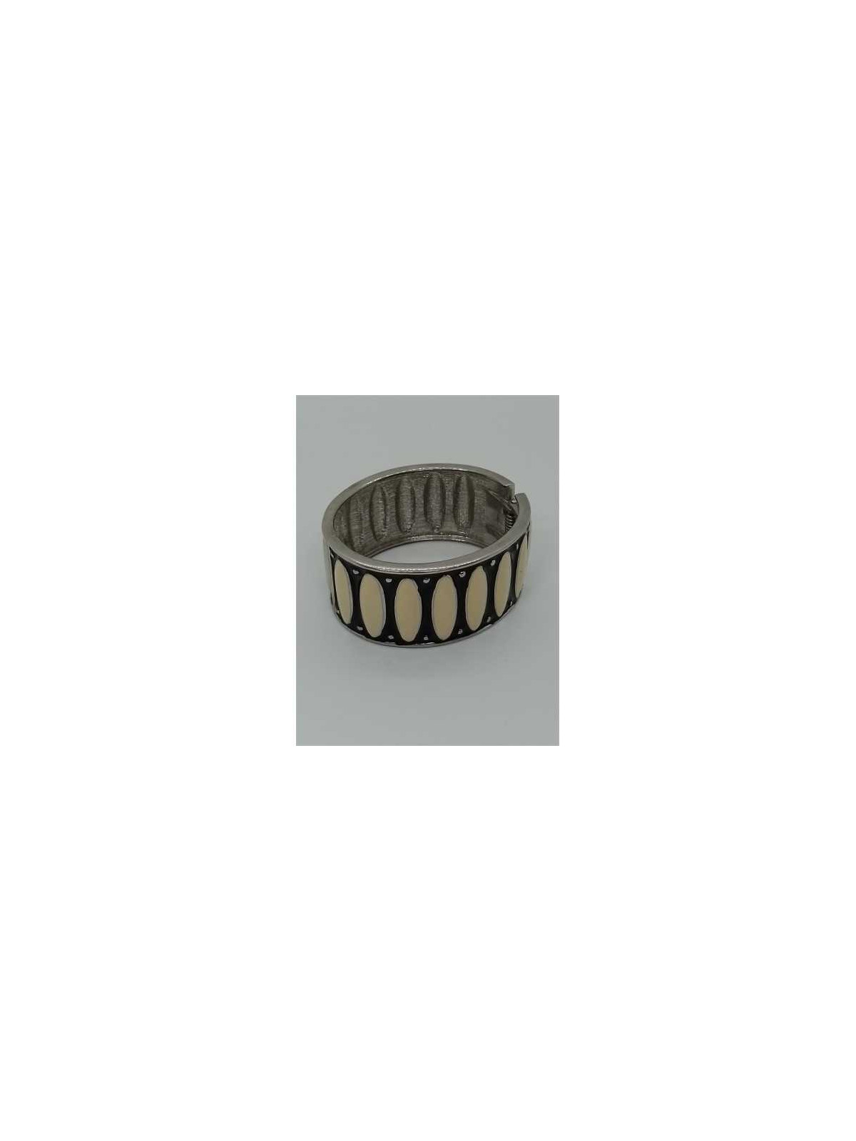 Bratara din metal culoare negru, alb si argintiu cu inchizatoare cu arc si clic.