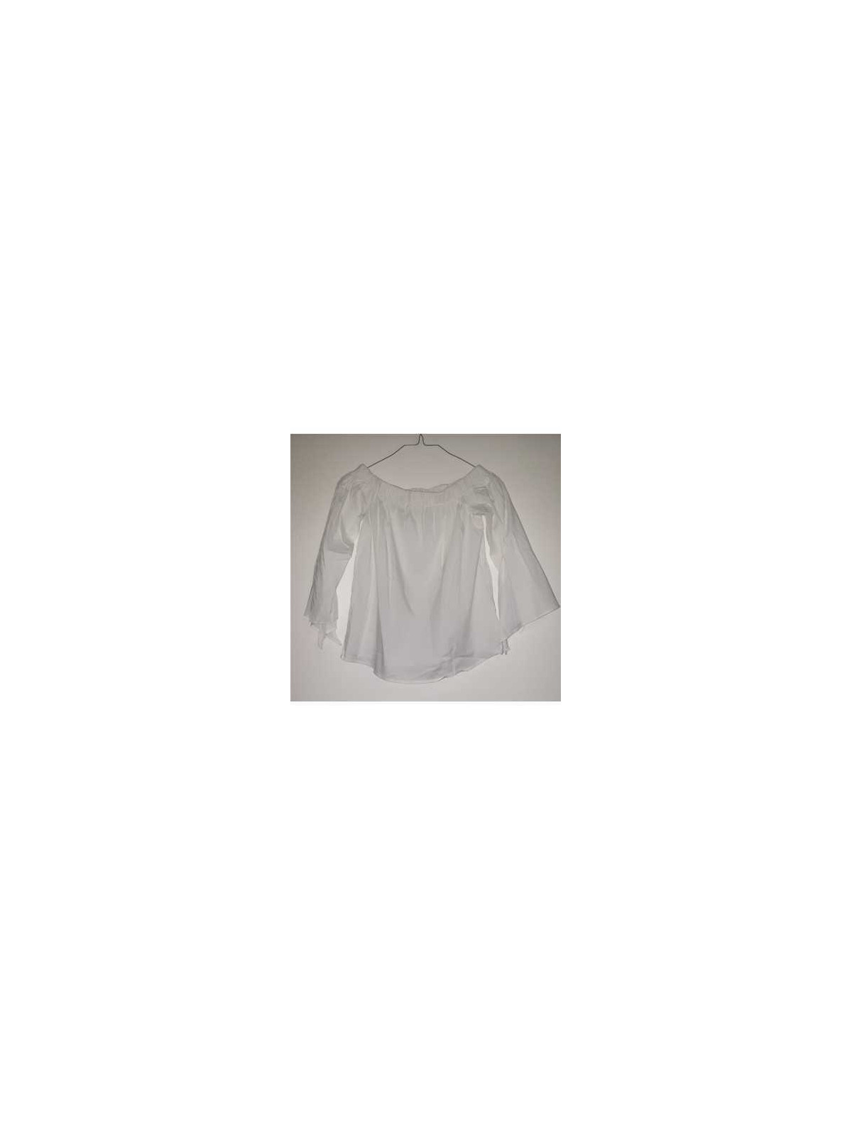 Model cu maneci largi desfacute jos, cu decolteu cazut pe umeri cu elastic.