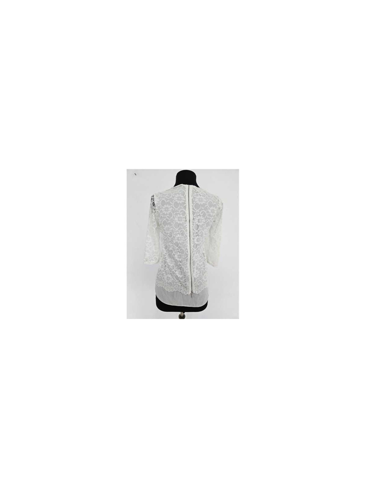 Model cu maneci trei sferturi, aspect dantelat, se incheie cu fermoar la spate.