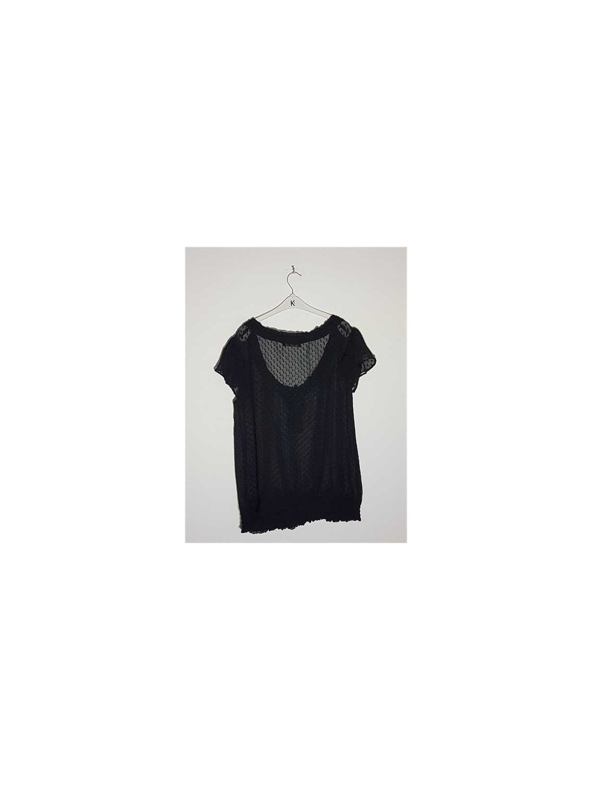 Model transparent, cu maneca scurta cu funda reglabila in fata.