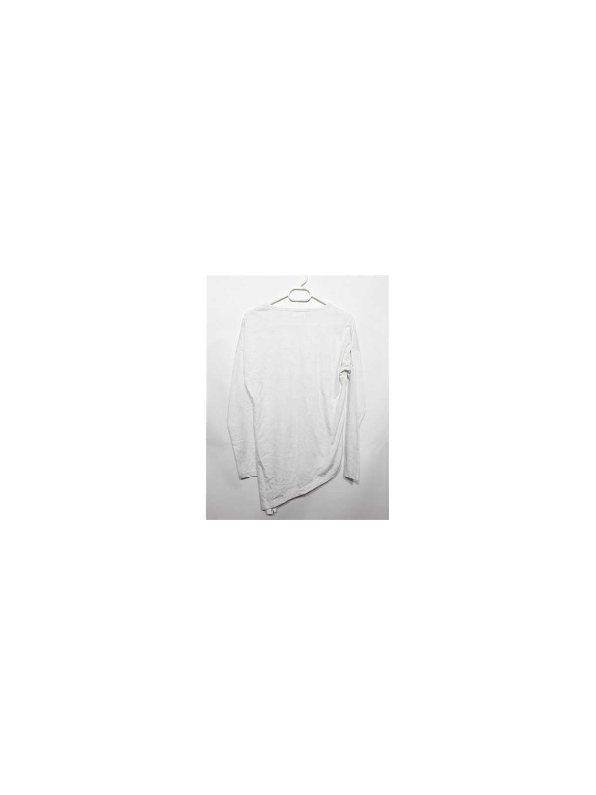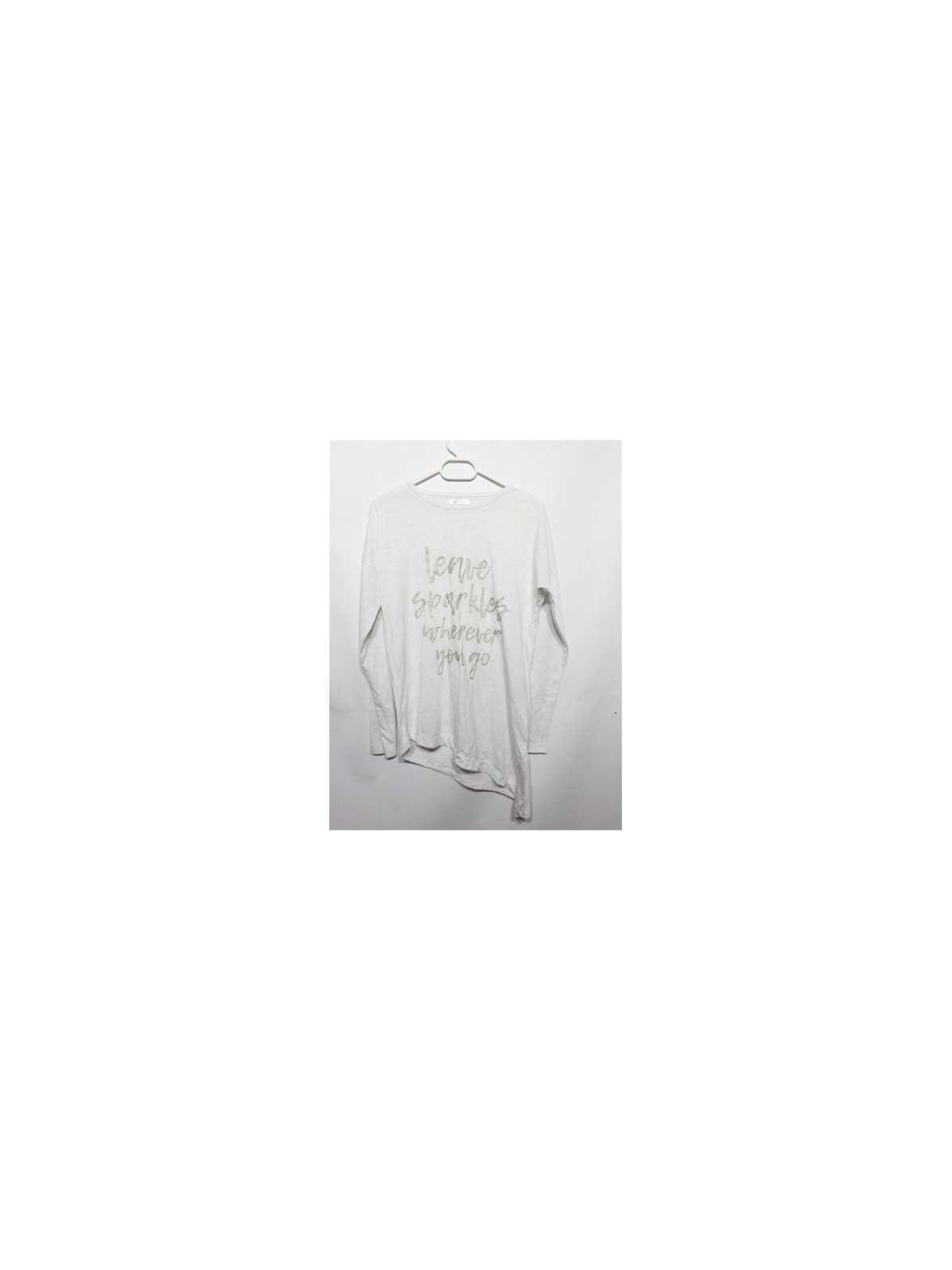 Model cu maneca lunga, culoare alb cu fir metalizat argintiu.