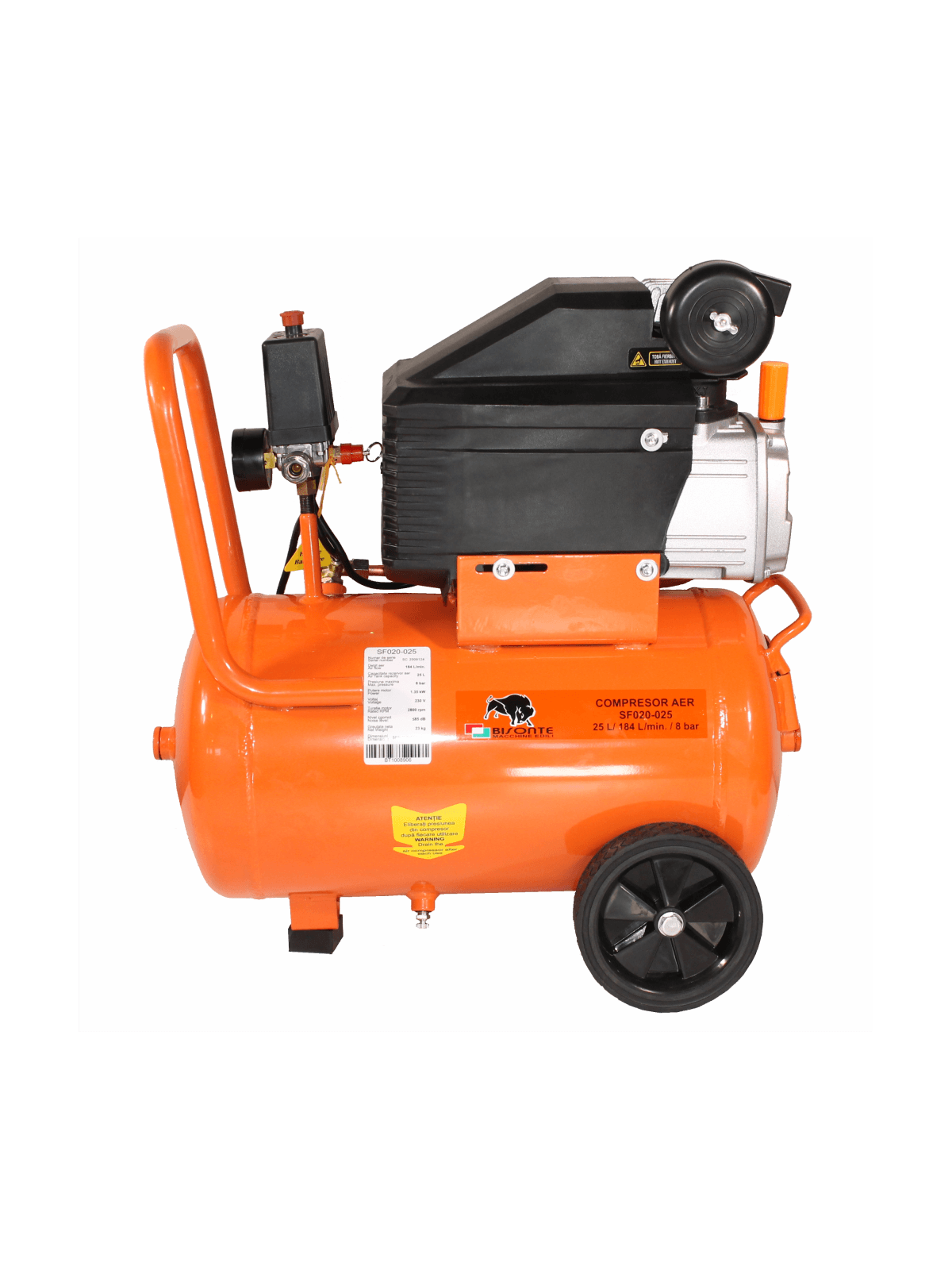 Compresor de aer cu piston BISONTE SF020-025 cu ulei 230V 2,0 cp, debit aer 187 l/min presiune 8 bar