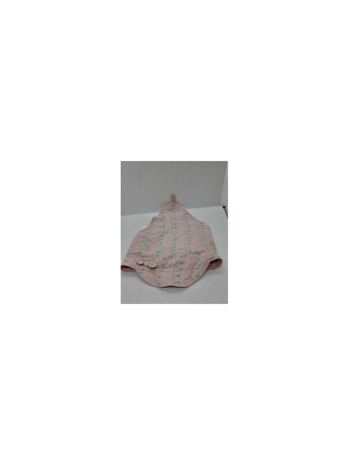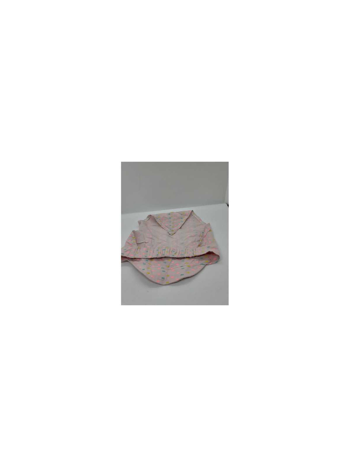 Model cu elastic la spate, culoare roz cu picatele multicolore.
