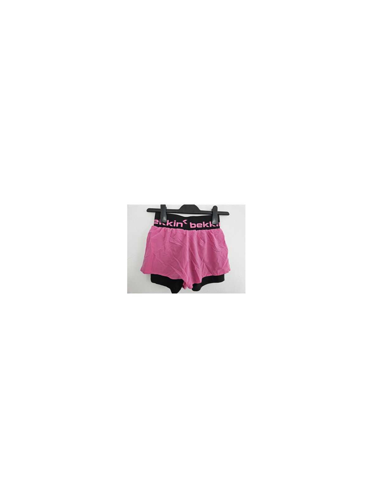 Model cu banda elastica lata in talie, pe deasupra cu material culoare roz.