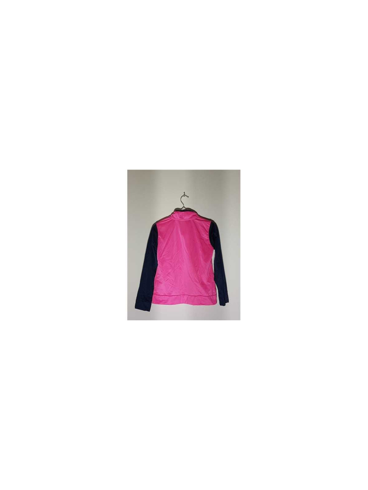 Model cu buzunare, cu scris aplicat pe piept, se incheie cu fermoar.