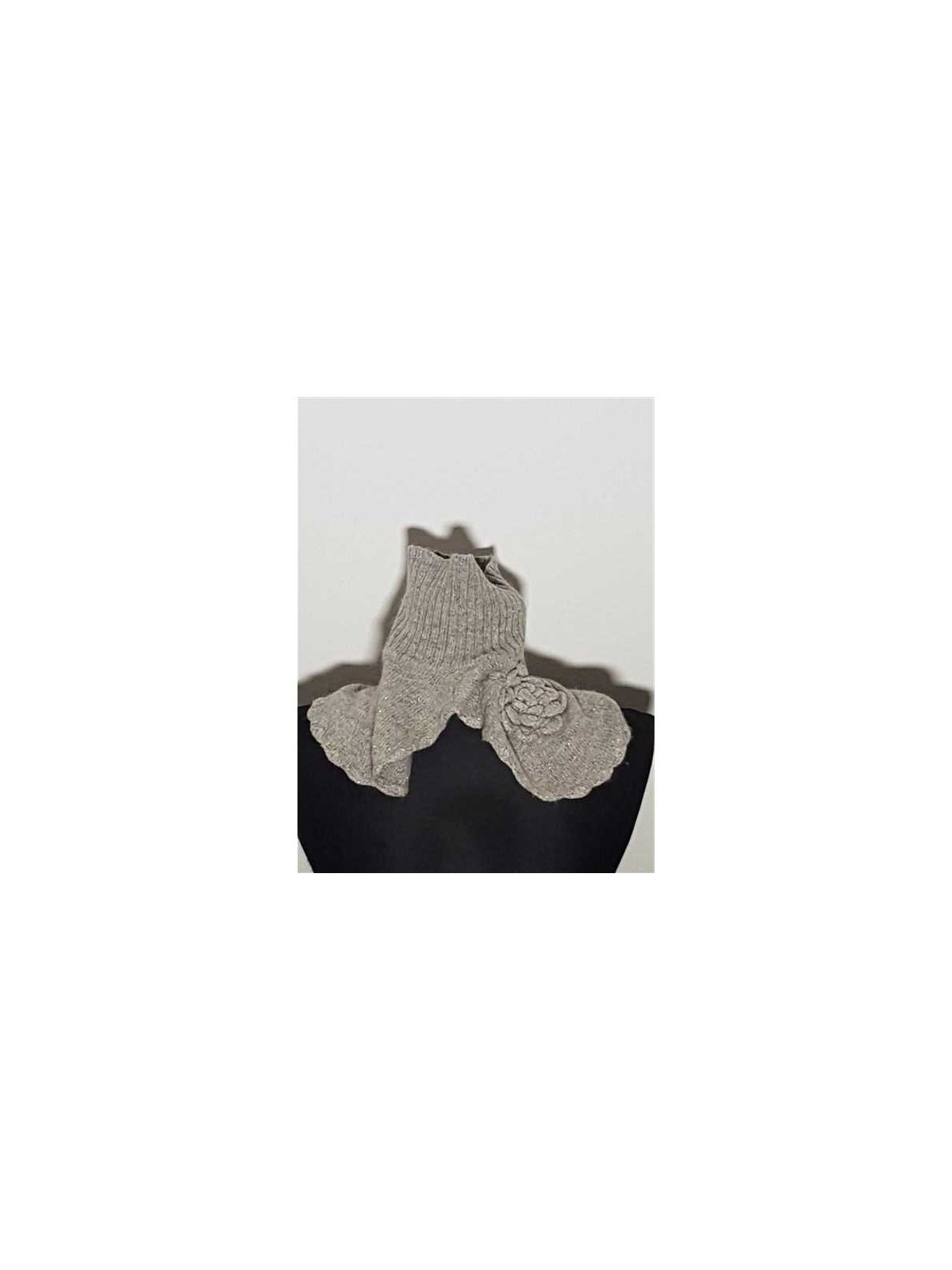 Model Uni, tricotat, cu fir metalizat culoare argintiu, accesorizat cu o floare