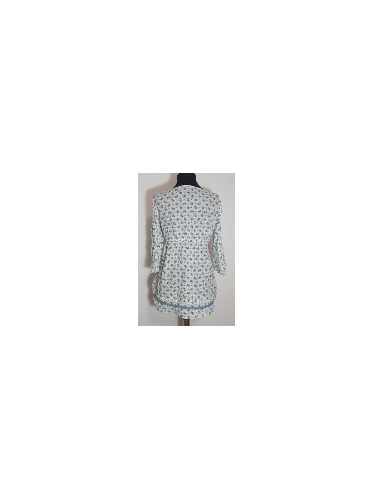 Model inflorat, cu elastic incretit in talie, maneca trei sferturi.