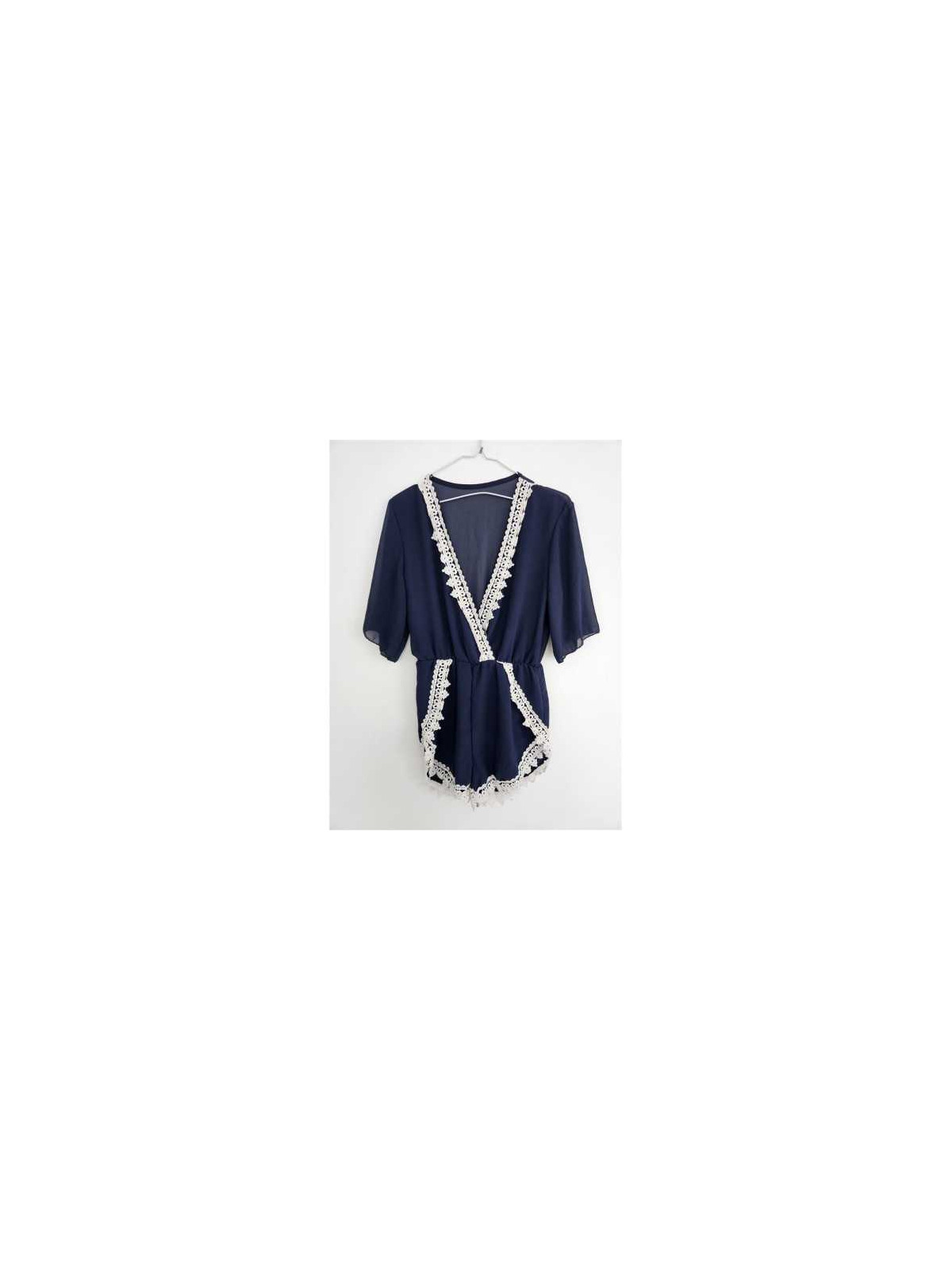 Model cu decupaj in V, bordura cu aspect dantelat, partea de sus transparenta.