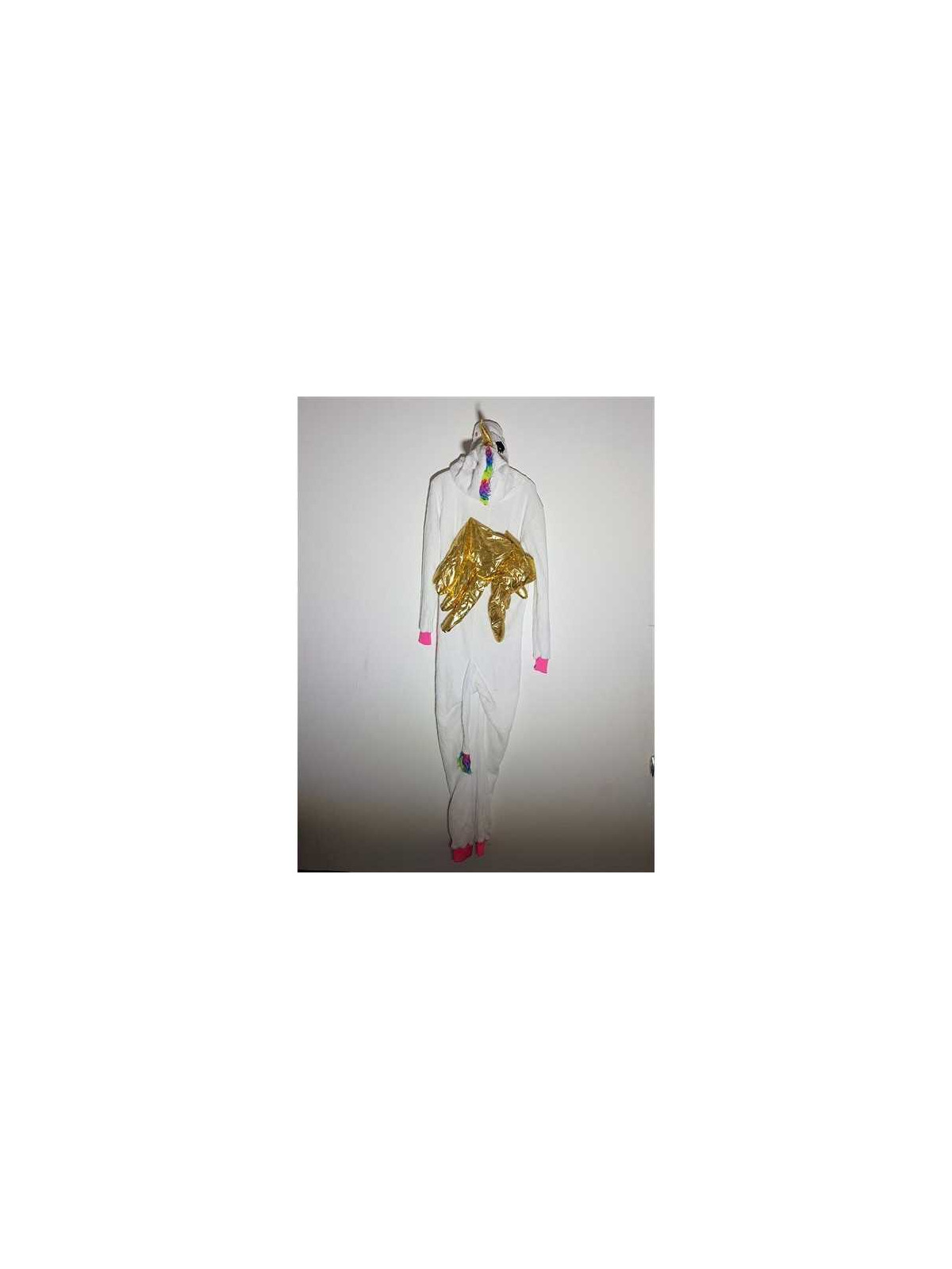 Model pufos, cu print multicolor, gluga si aripi, se incheie in fata cu fermoar.