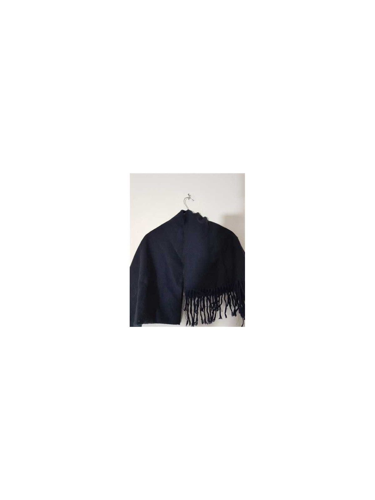 Model Uni, tricotat, cu franjuri, culoare bleumarin.