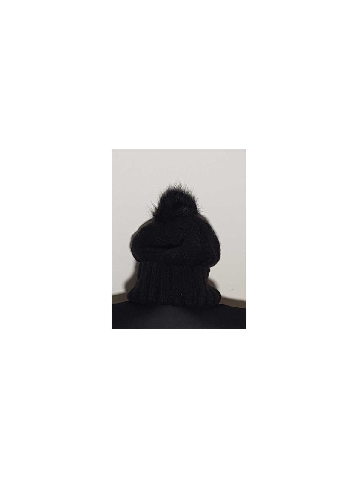 Model Uni, tricotat, cu ciucure pufos.