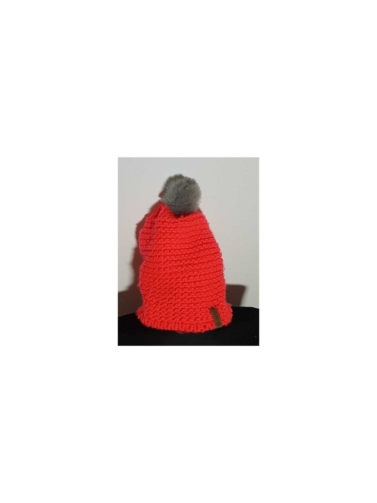Model captusit, tricotata, cu ciucure pufos.