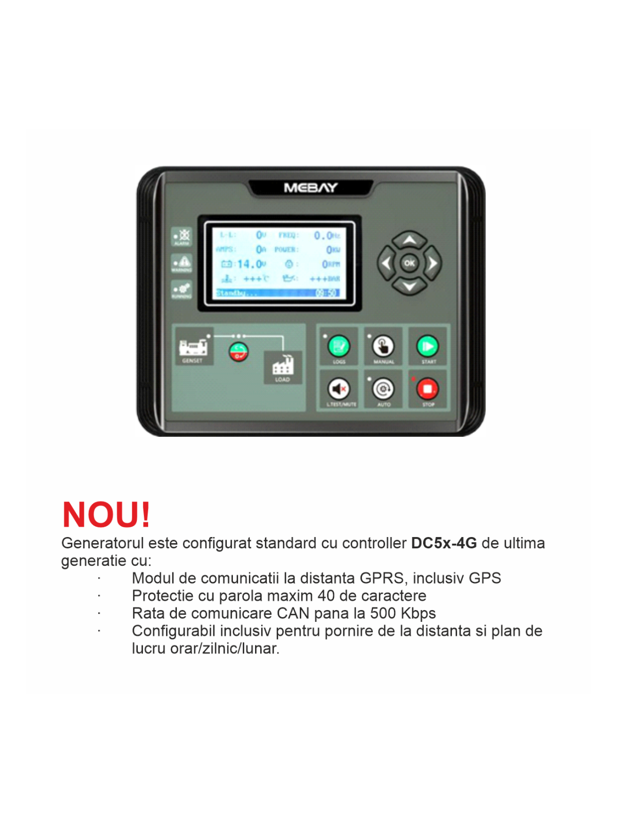 Generatorul este configurat standard cu controller DC5x-4G de ultima generatie cu: