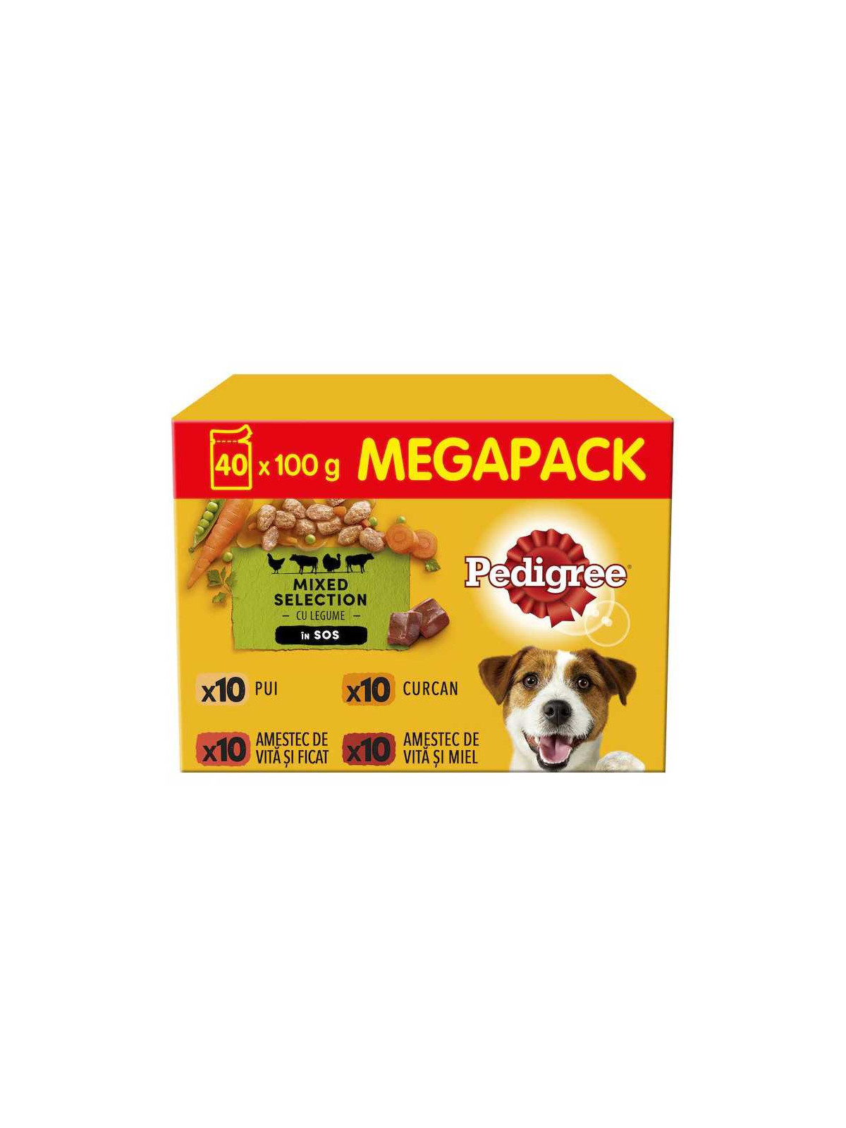 Pedigree Adult Selectii Mixte cu legume in Sos plicuri cu pui, curcan, vita si miel 40 x 100 g