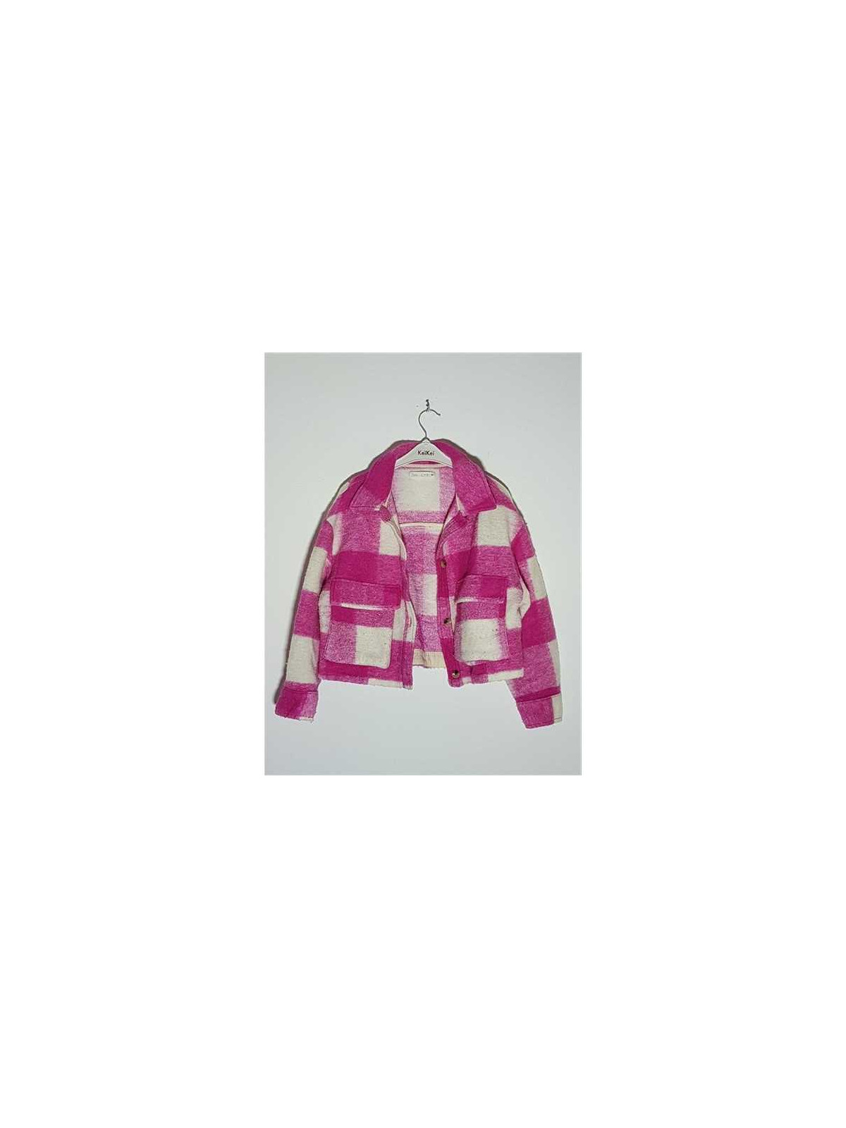 Model scurt in talie tip camasa, in carouri, cu maneci lungi, buzunare cu clapa, se incheie cu nasturi.