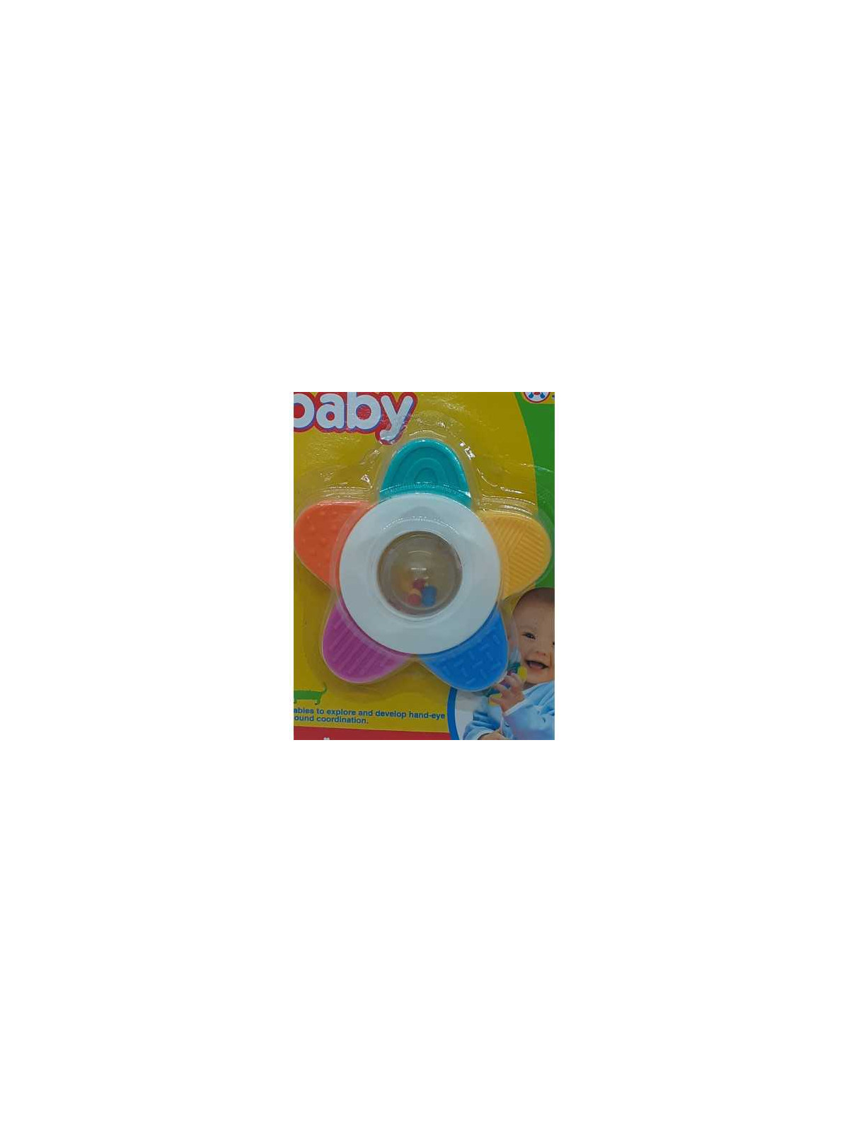 Jucaria in forma de floare cu bilute colorate,cu texturi speciale, pentru a calma gingiile inflamate ale micutului.