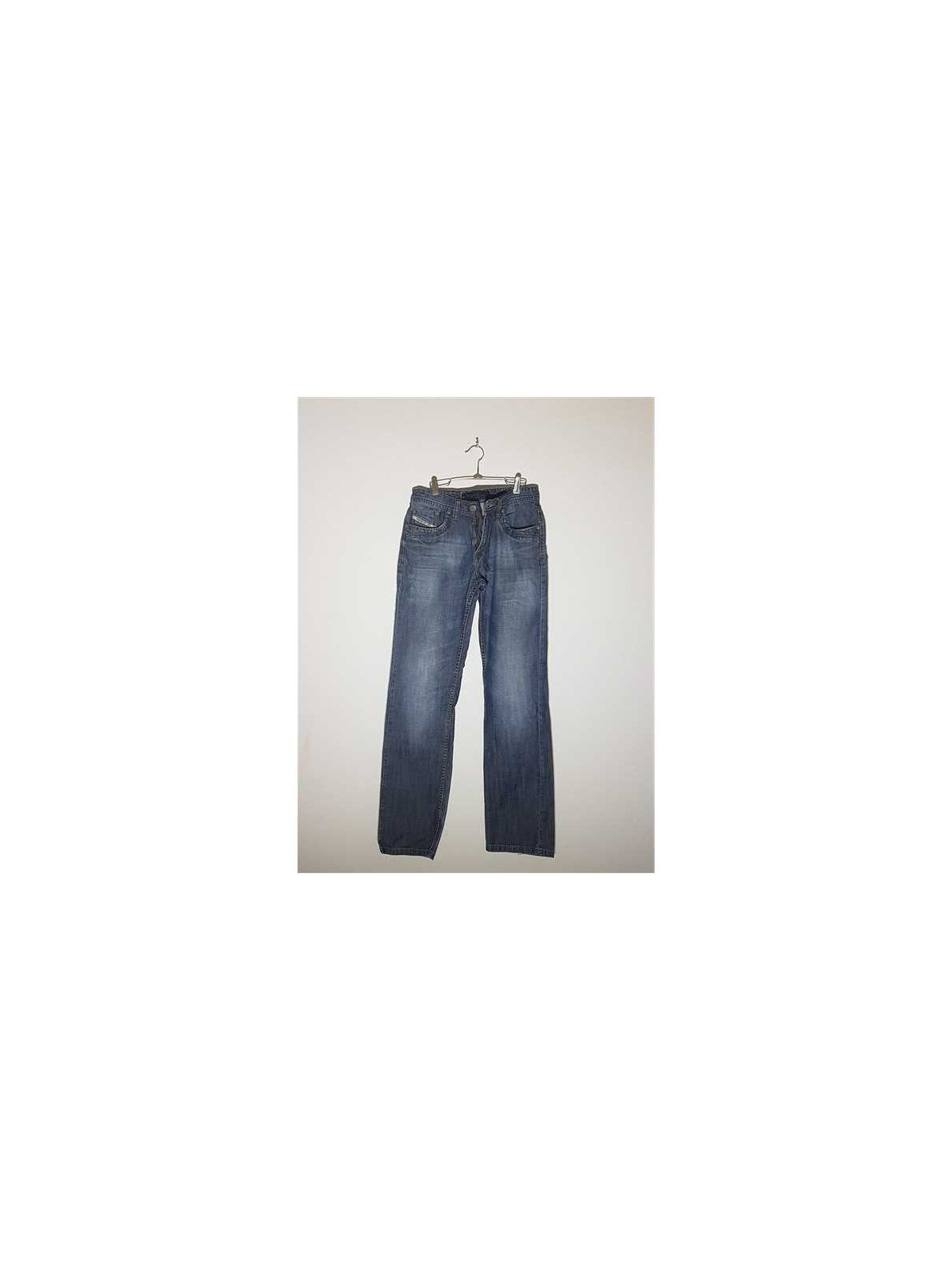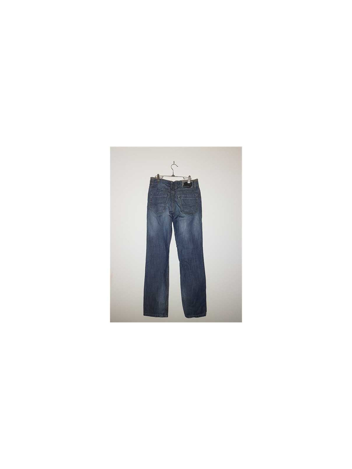 Model usor decolorat, cu buzunare, gaici pentru curea, se incheie cu nasture si fermoar