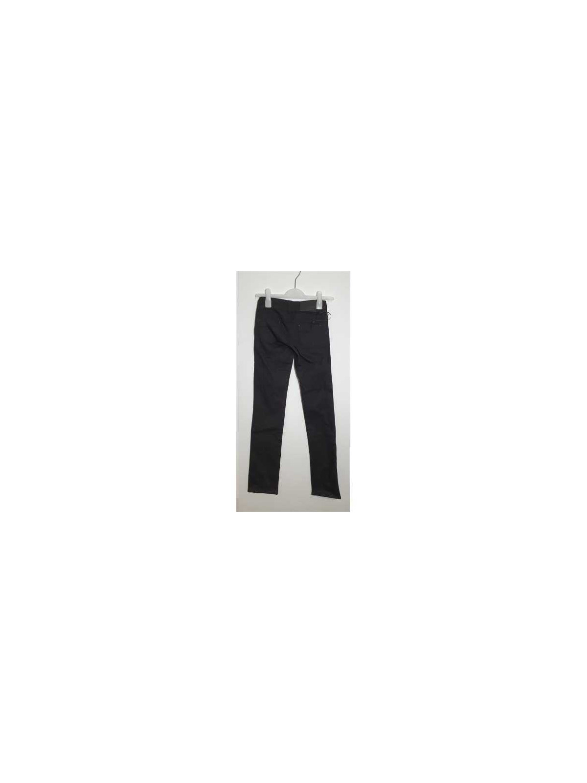 Model cu talie joasa, cu buzunare, se inchid cu nasturii si fermoar.