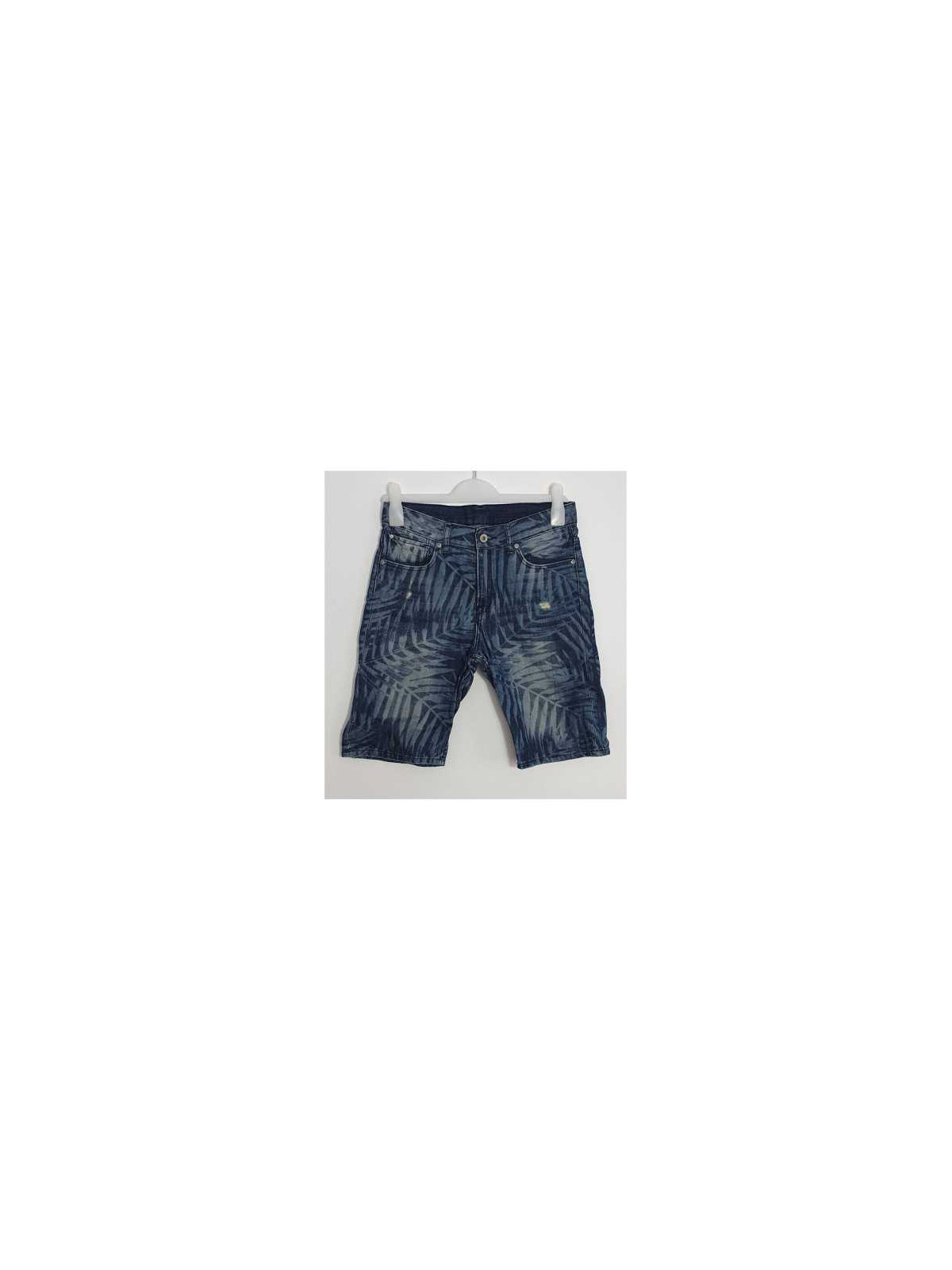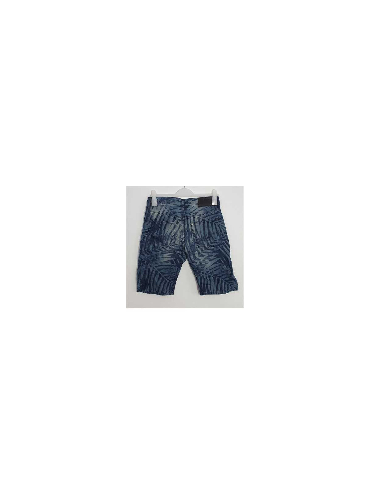 Model rupt print frunze, cu buzunare frontal si la spate, gaici pentru curea, se incheie cu fermoar si nasture.