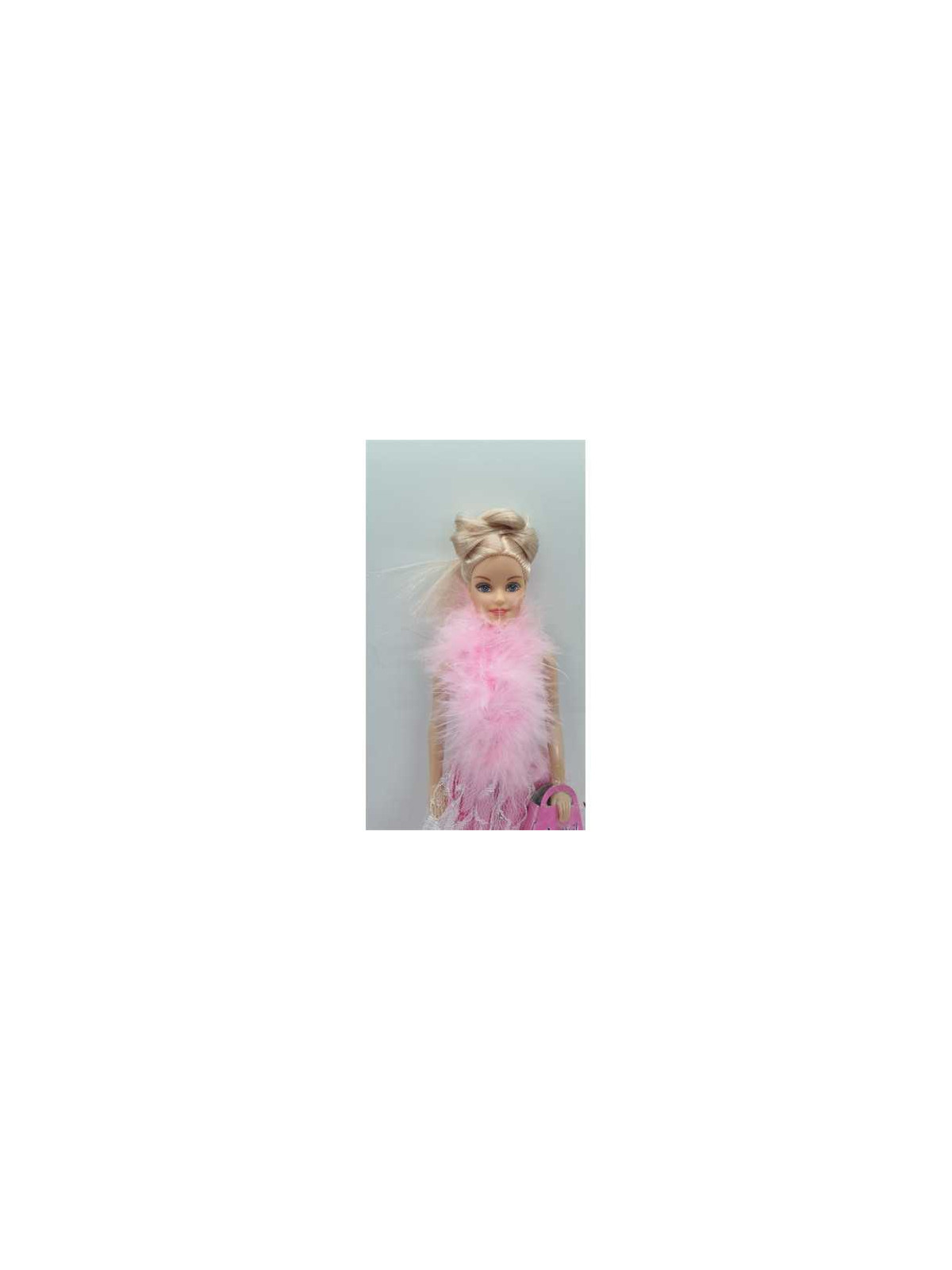 Papusa cu rochita roz, cu puf, si gentuta.