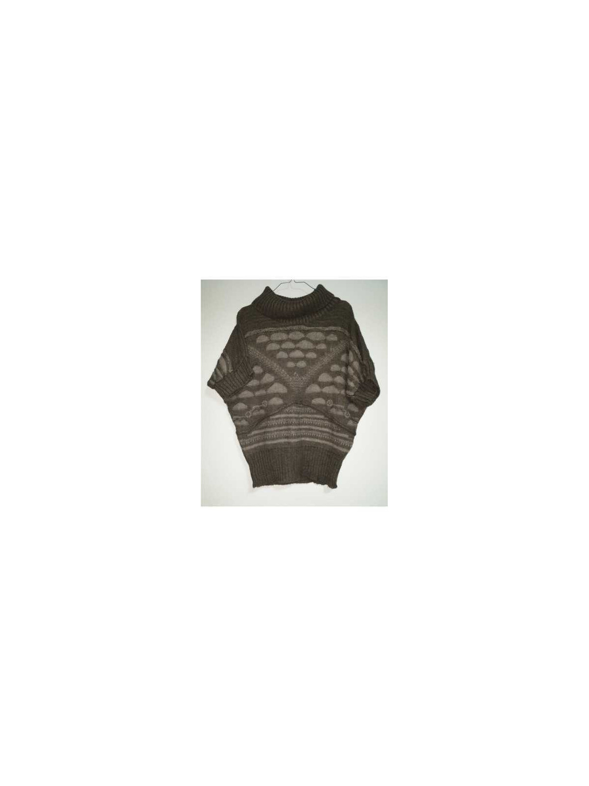 Model tricotat, cu maneca scurta, guler inalt, detaliu in diferite forme