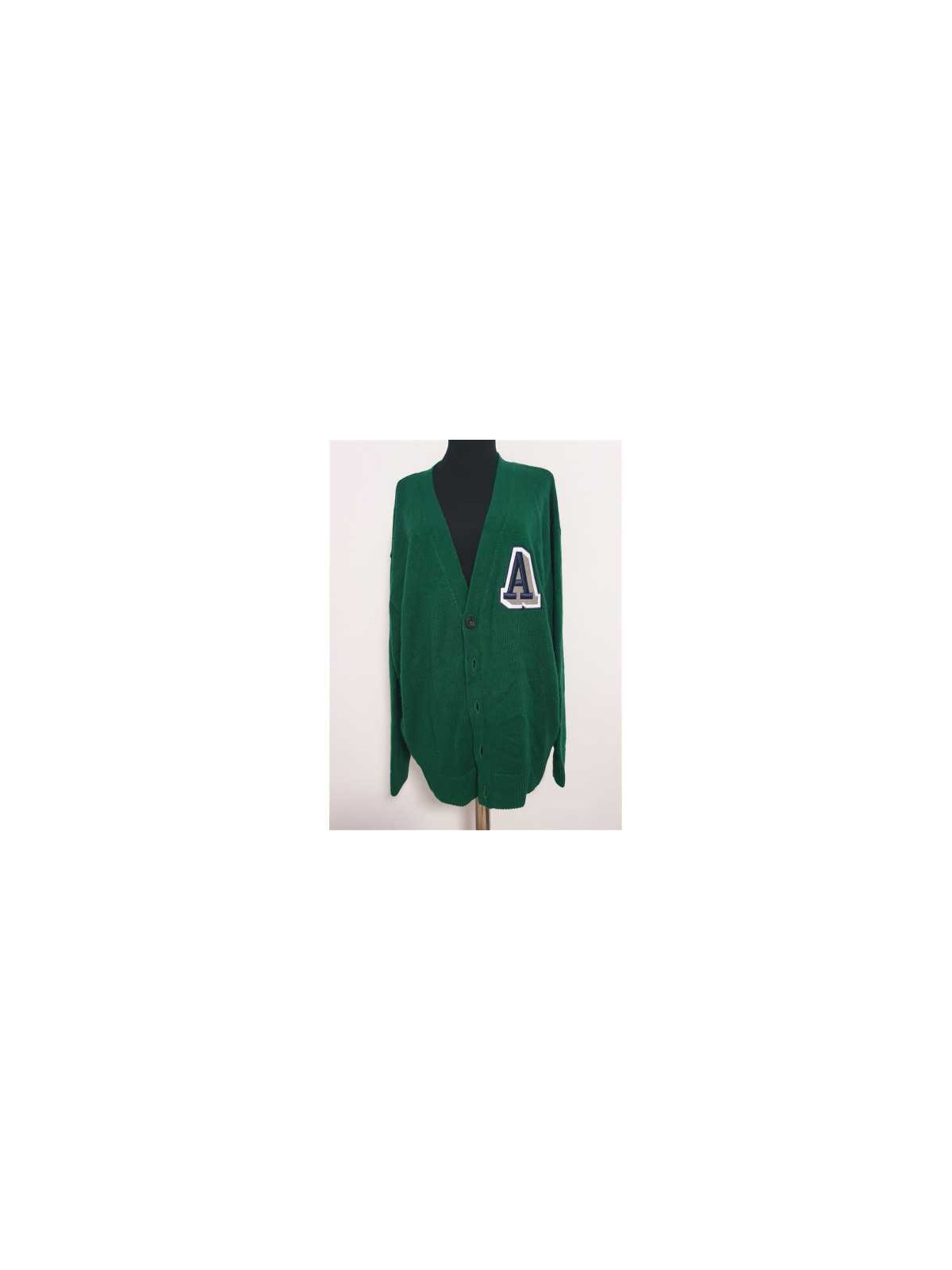 Model tricotat, cu buzunare, initiala A in piept, se incheie cu nasturi.