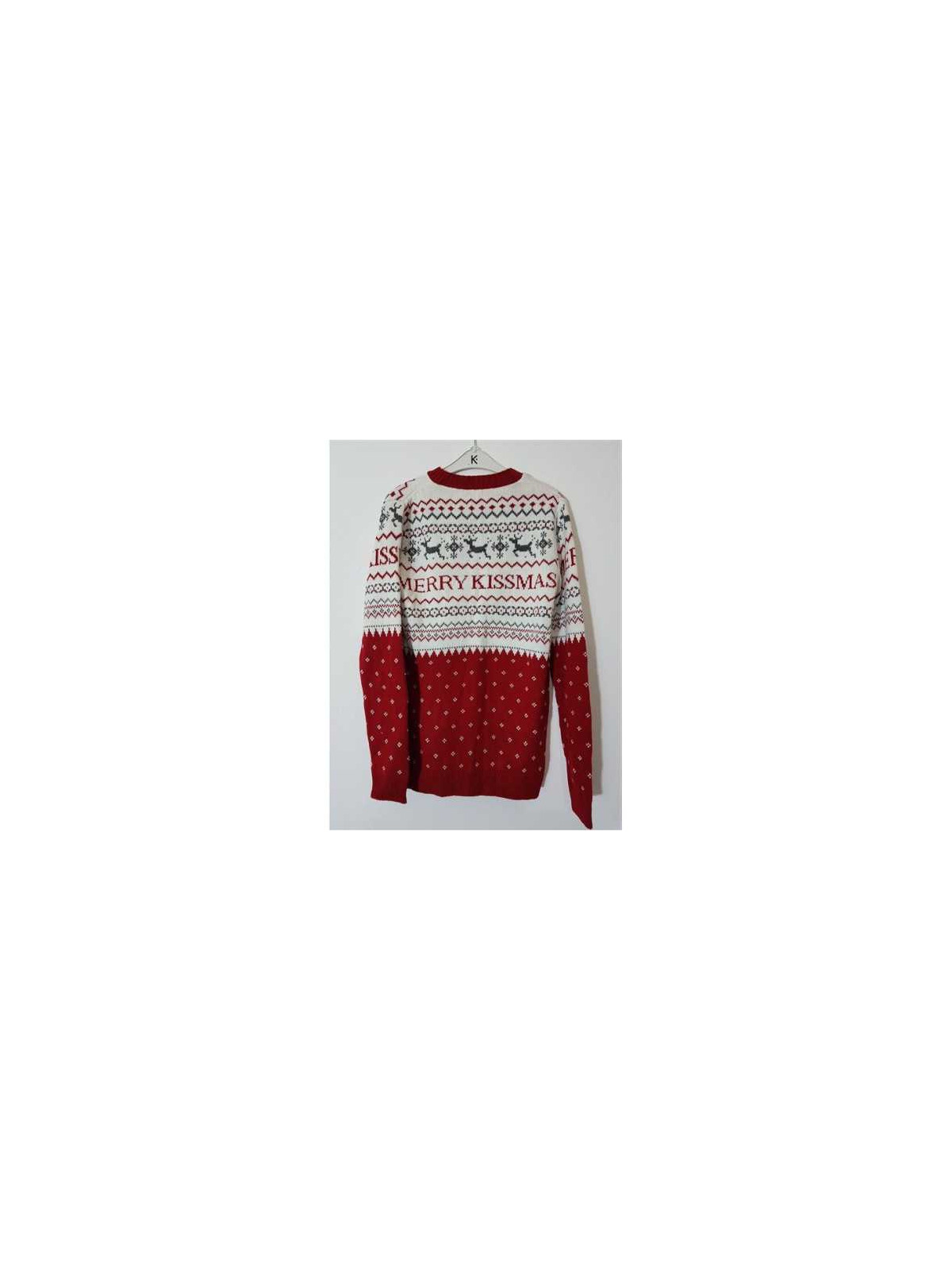 Model tricotat, cu imprimeu de Craciun, scris aplicat pe piept.