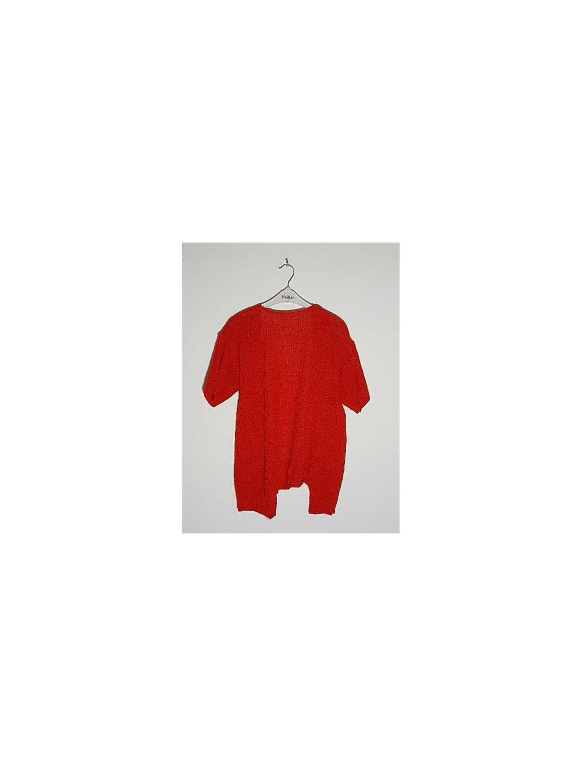 Model Uni, tricotat, cu maneci scurte.