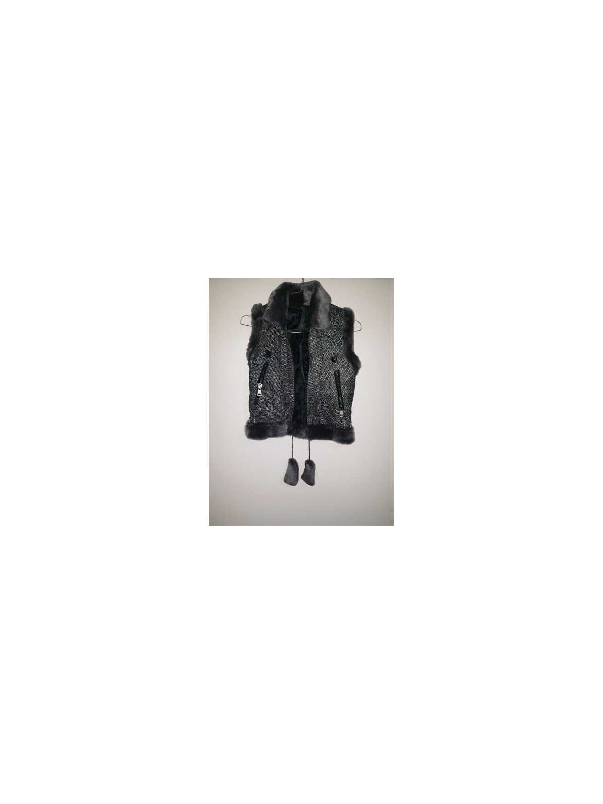 Model cu buzunare false accesorizate cu fermoar, se inchide cu fermoar si snur jos.