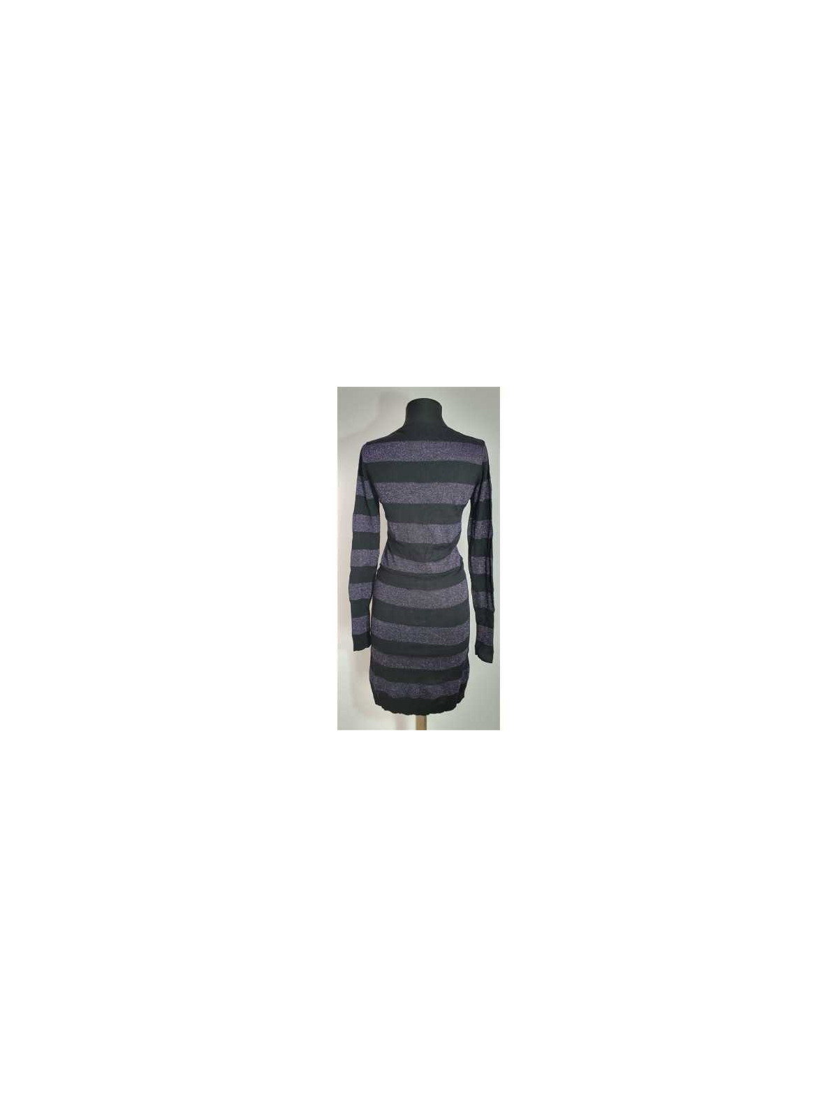 Model cu maneca lunga, cu dungi mov sclipitoare ( din fir metalizat).