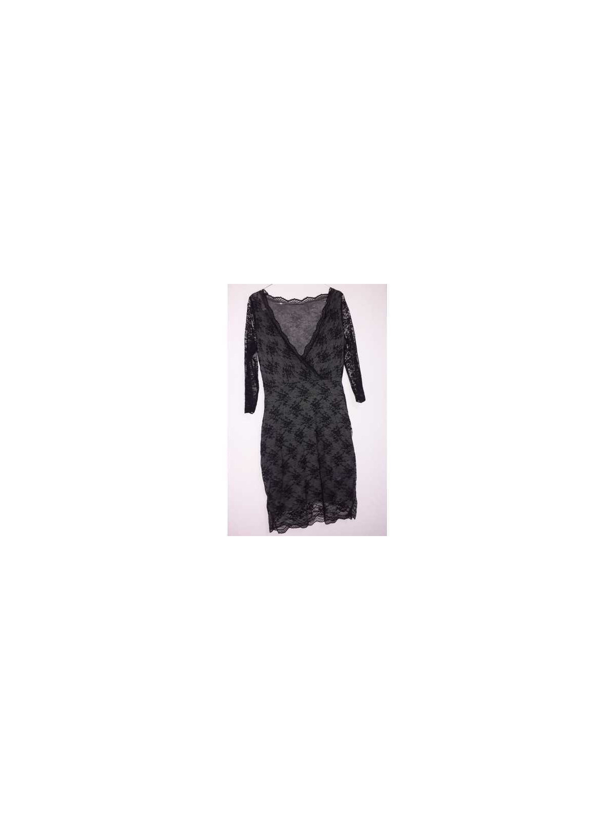 Model cu maneca trei sferturi pe deasupra material dantelat, se inchide cu fermoar intr o parte.