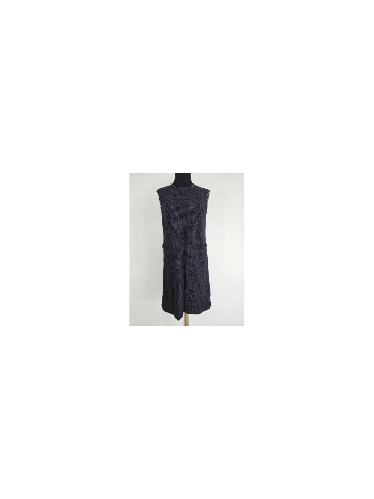 Model Uni, cu fir metalizat culoare auriu, captusit, fara maneci, se inchide la spate cu fermoar.