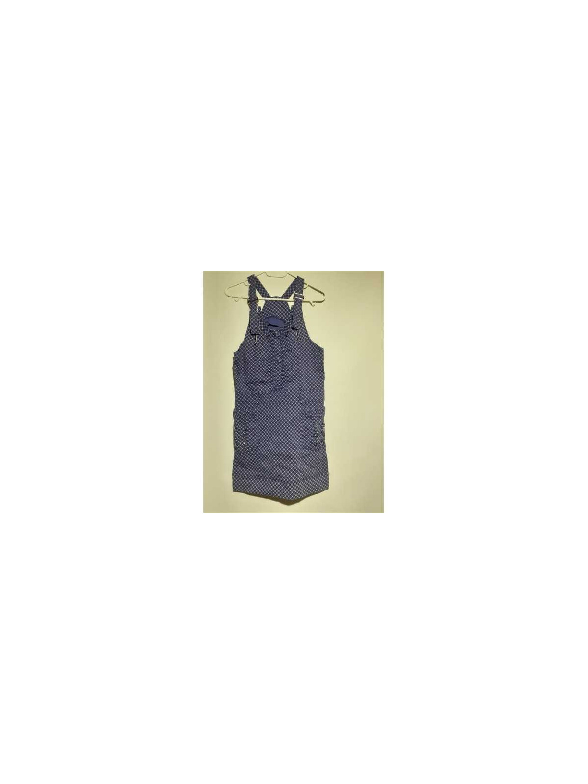 Sarafan pentru fetite cu buzunare, culoare albastru cu model alb si rosu.